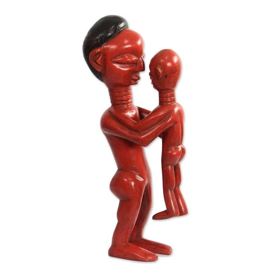 Sese Wood Father and Child Sculpture in Red from Ghana 'Good Father' Item ID: 2671805597