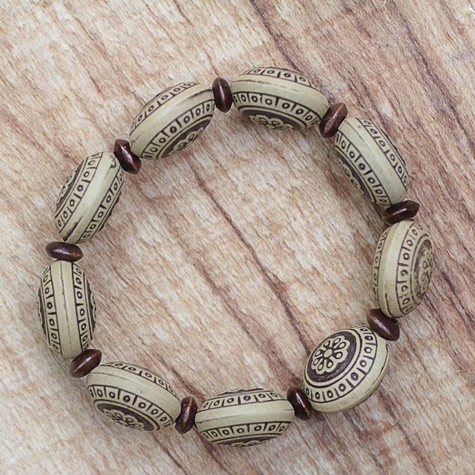 Sese Wood Floral Recycled Plastic Beaded Stretch Bracelet 'Boho Flowers' Item ID: 2671800994
