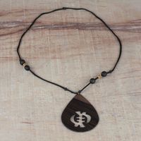 Sese Wood Gye Nyame Pendant Necklace from Ghana 'Gye Nyame Drop' Item ID: 2671806435