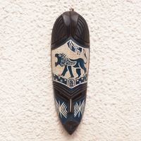 Sese Wood Lion Motif Wall Mask Hand Carved in Ghana 'Lion of Ghana' Item ID: 2671803932