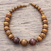 "Carrying a promise of beauty wherever it goes, this necklace is designed and crafted by Ghanaian artisan Tina Quaye. She carefully selects round beads and discs of brown sese wood that alternate, creating a pleasing pattern."
