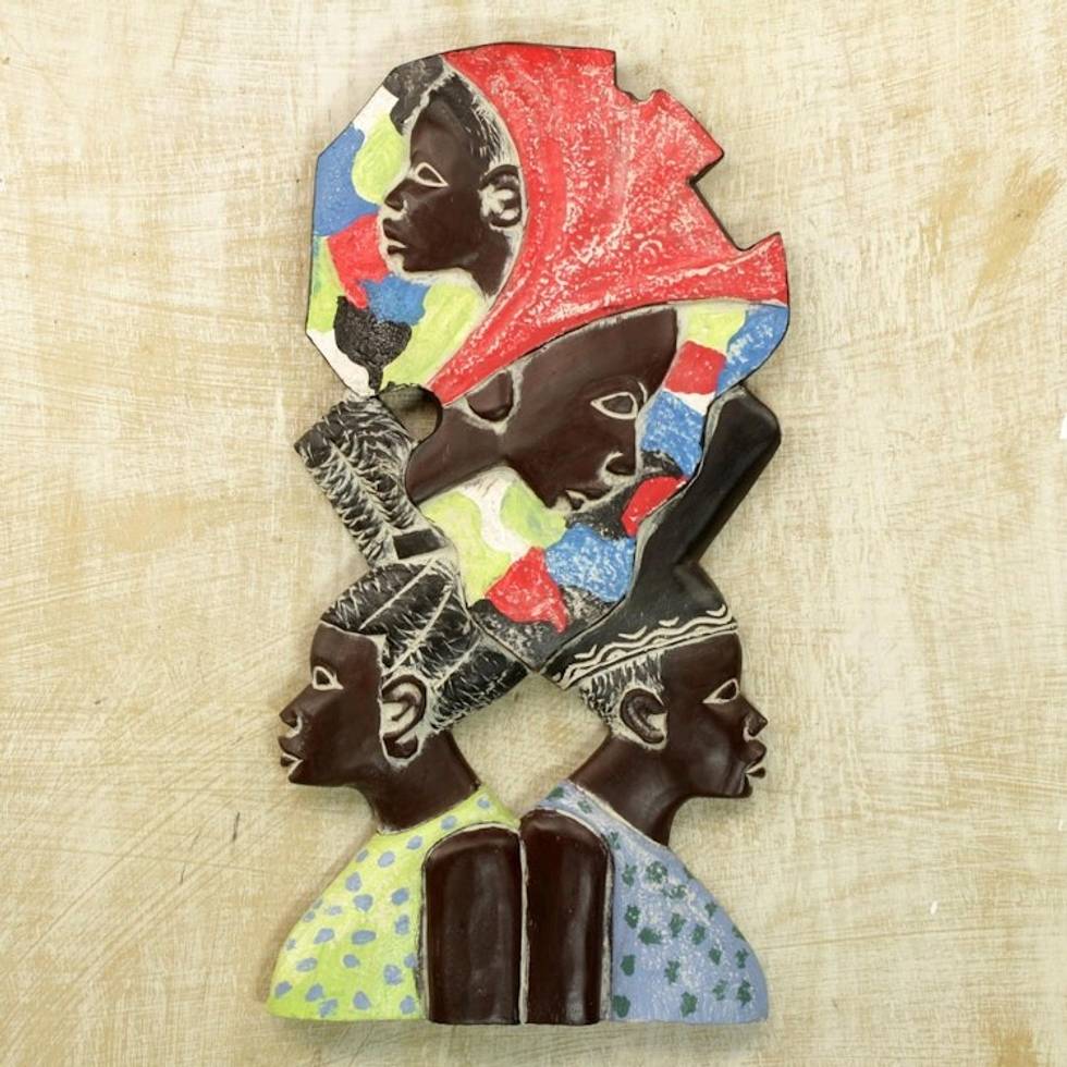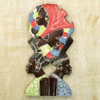 Sese Wood Wall Relief Panel of African Women from Ghana 'Women in Unity' Item ID: 2671803877