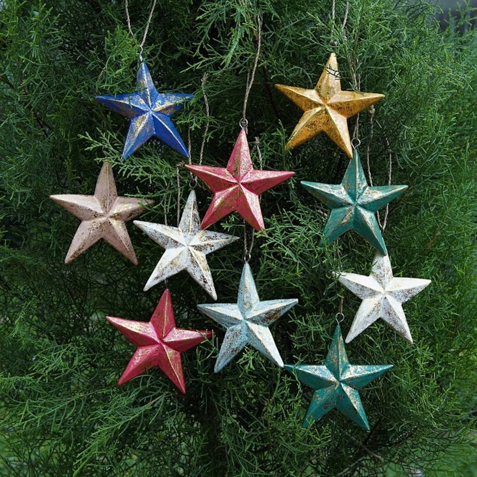 Set of 10 Colorful Wood Star Ornaments with Golden Glitter 'Twinkle Rainbow Star' Item ID: 2671765730