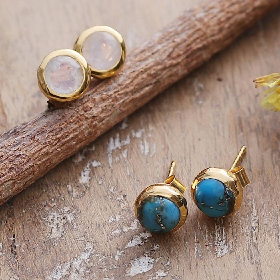 Set of 2 18k Gold-Plated Gemstone Round Stud Earrings 'Palace Gems' Item ID: 2669942076