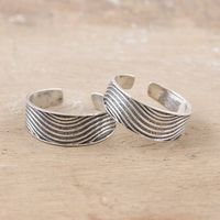 Set of 2 Bohemian Style Sterling Silver Toe Rings from India 'Wavy Style' Item ID: 2676666185