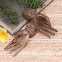 Set of 2 Carved Floral Hibiscus Wood Sculpture of Hands 'Passion Hands' Item ID: 2669891782
