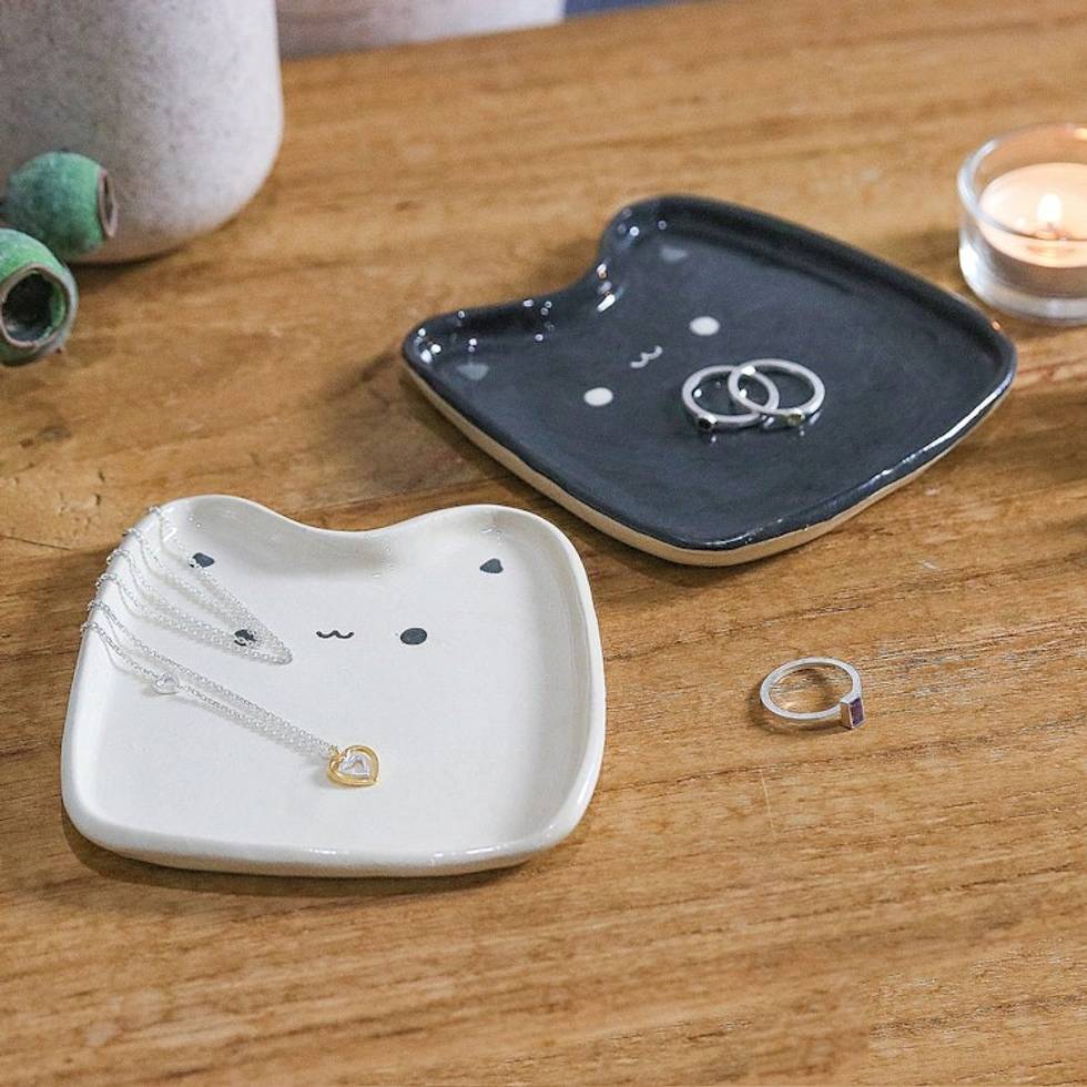Set of 2 Cat-Shaped Black and White Ceramic Catchalls 'Black White Felines' Item ID: 2671796953