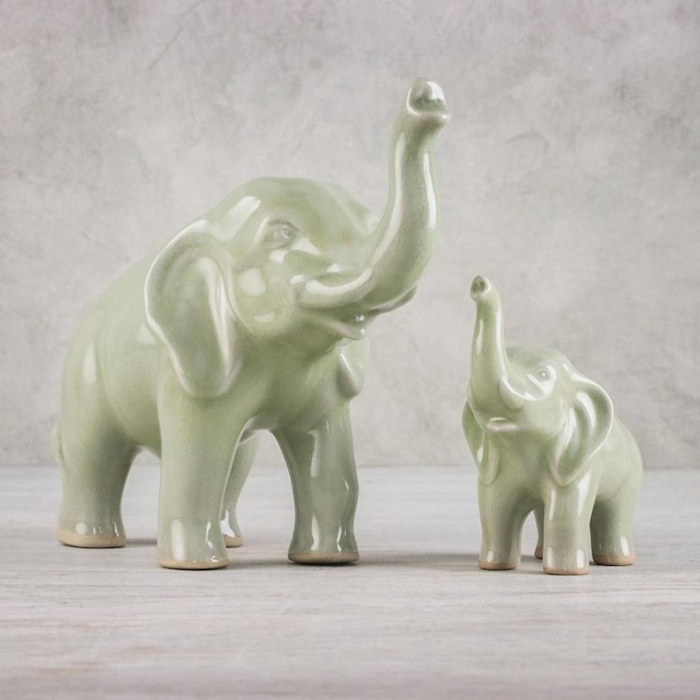 Set of 2 Ceramic Statuettes of Mother and Calf Elephant 'Maternal Elephant' Item ID: 2671798474