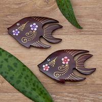 Set of 2 Hand-Painted Floral Fish-Shaped Wood Magnets 'Paradisial Fish' Item ID: 2676663146