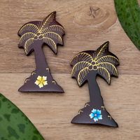 Set of 2 Hand-Painted Floral Palm Tree-Shaped Wood Magnets 'Paradisial Coasts' Item ID: 2671556794