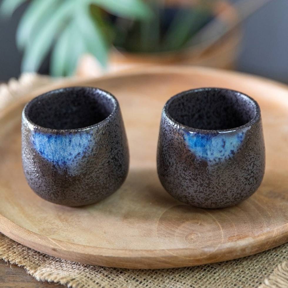 Set of 2 Handcrafted Bohemian Ceramic Cups from Bali 'Bohemian Satisfaction' Item ID: 2671762933