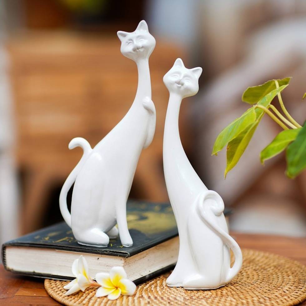 Set of 2 Handcrafted Cement and Lava Sand Cat Sculptures 'Feline Finesse' Item ID: 2671765348