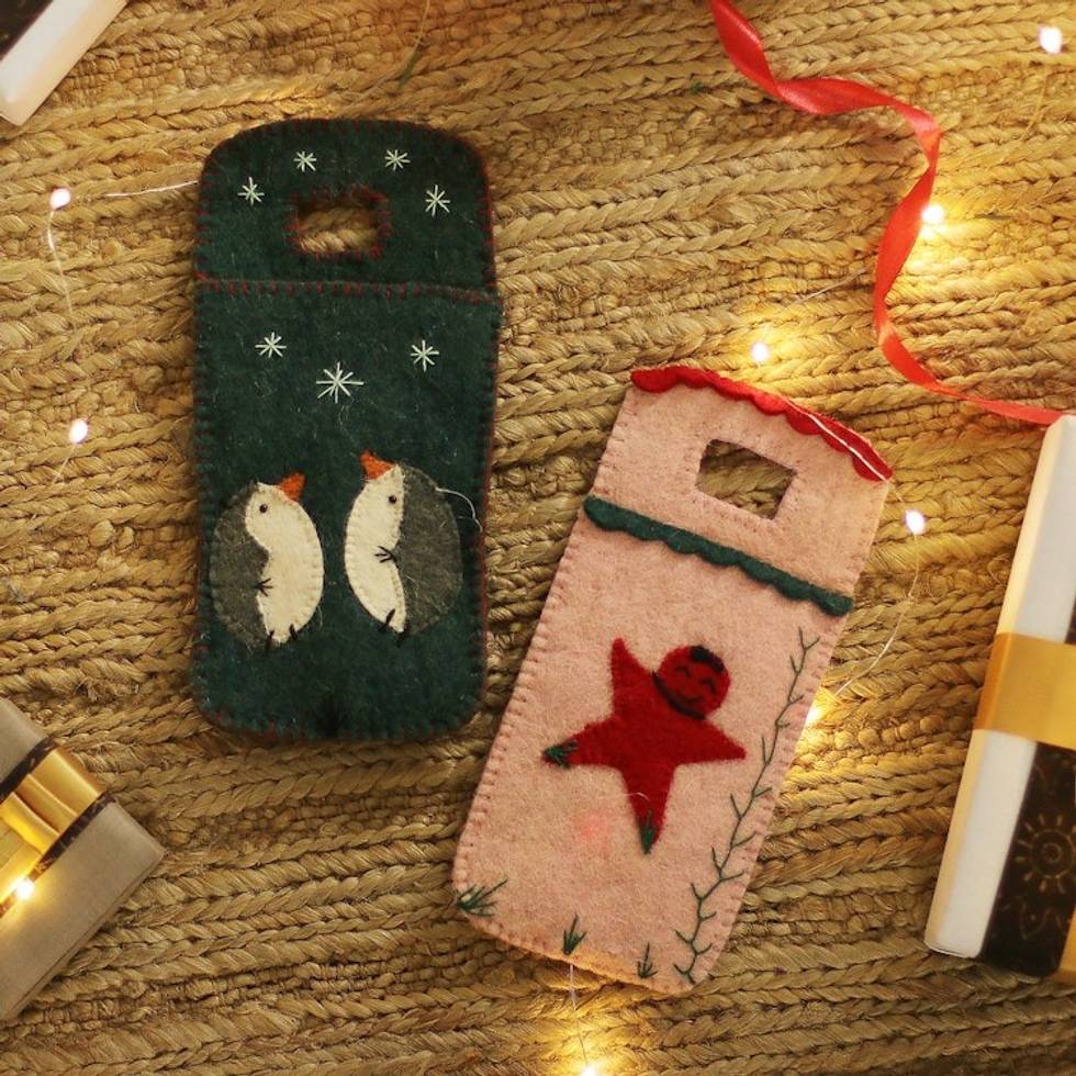 Set of 2 Handcrafted Holiday-Themed Wool Felt Mobile Cases 'Holiday Vibes' Item ID: 2671782218