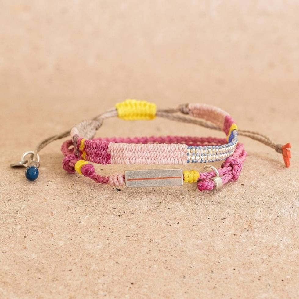 Set of 2 Handcrafted Wristband Bracelets in Pink Hues 'Pink Bond' Item ID: 2671772184