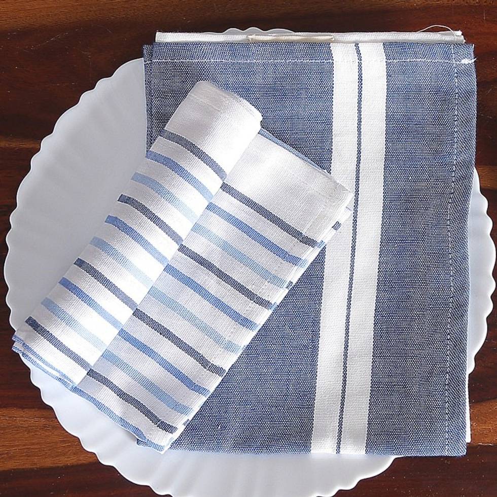 Set of 2 Handwoven Blue and White Striped Cotton Dish Towels 'Blue Taste' Item ID: 2671782830