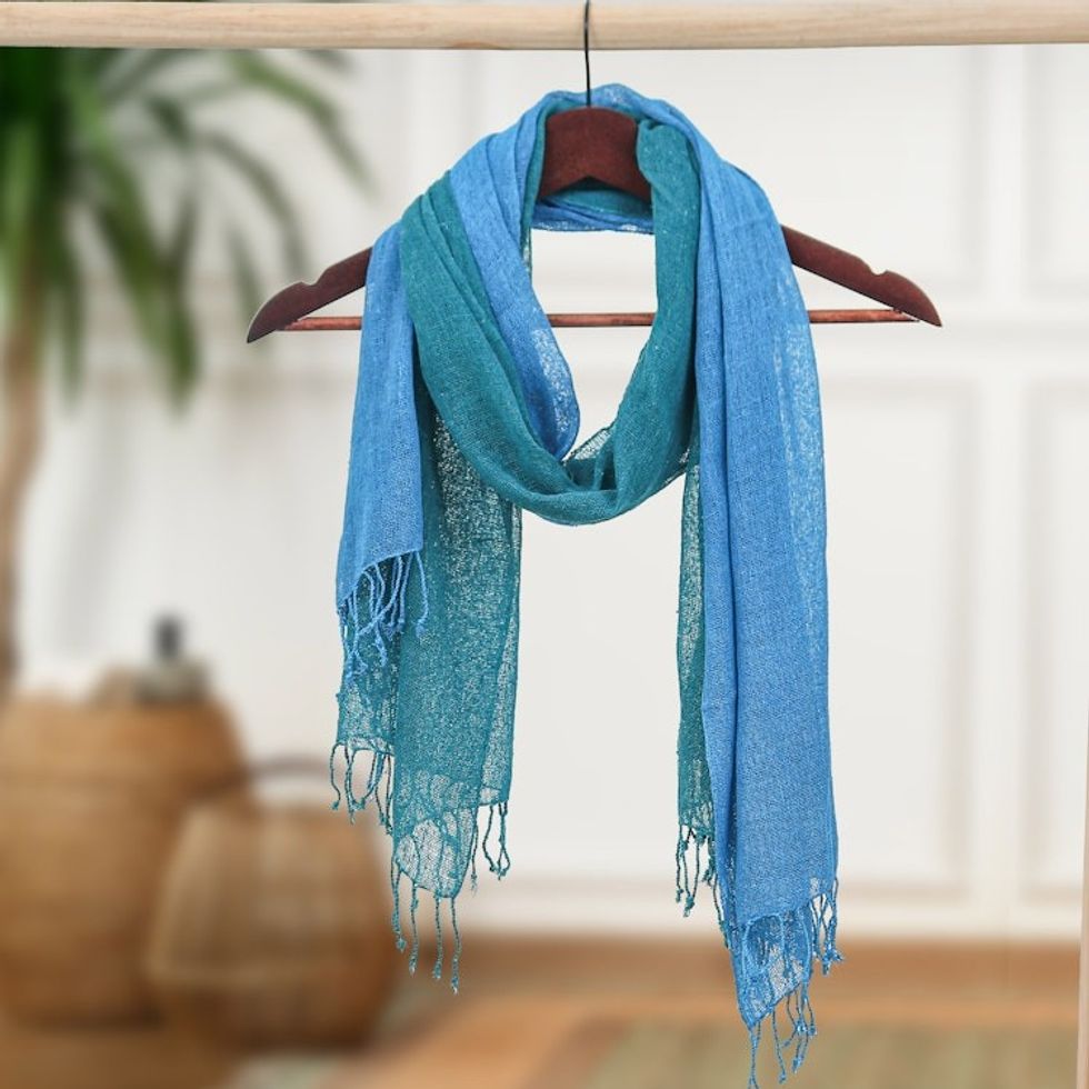 Set of 2 Ocean-Inspired Teal and Cyan Cotton Scarves 'Teal and Cyan Tides' Item ID: 2669897580