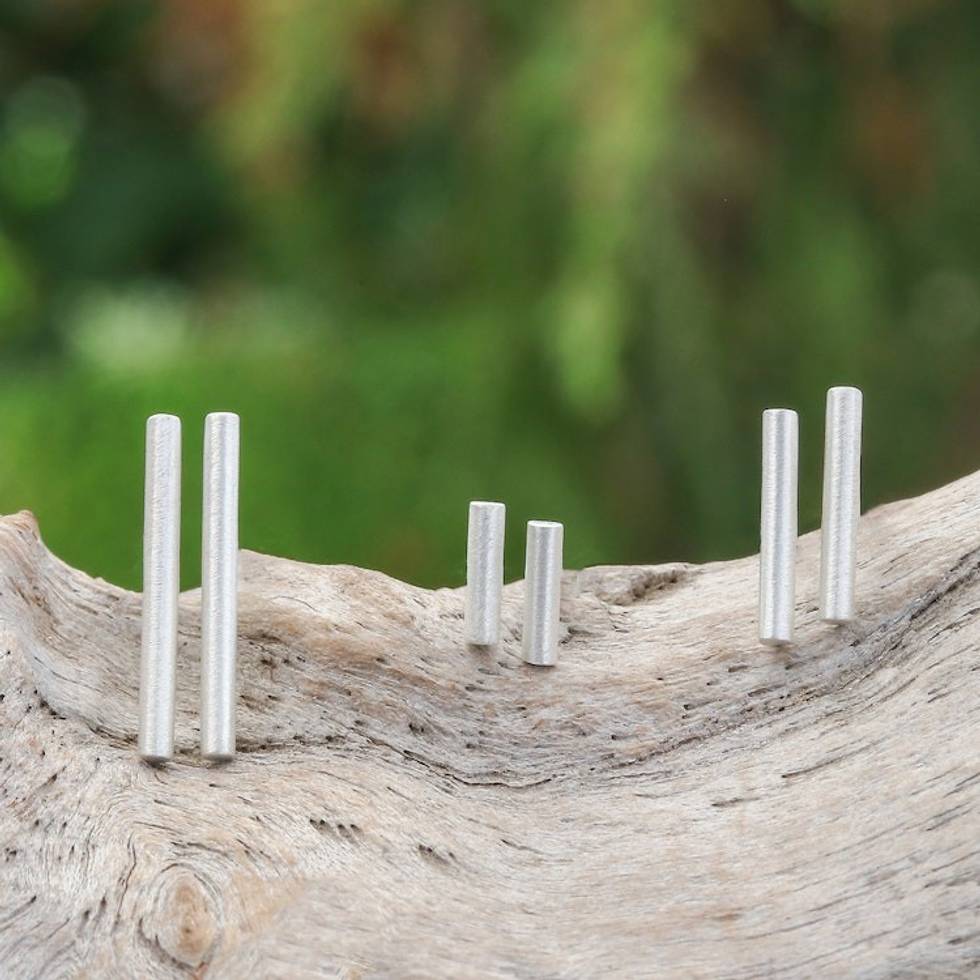 Set of 3 Brushed-Satin Finished Minimalist Earrings 'Daily Minimalist' Item ID: 2671798214