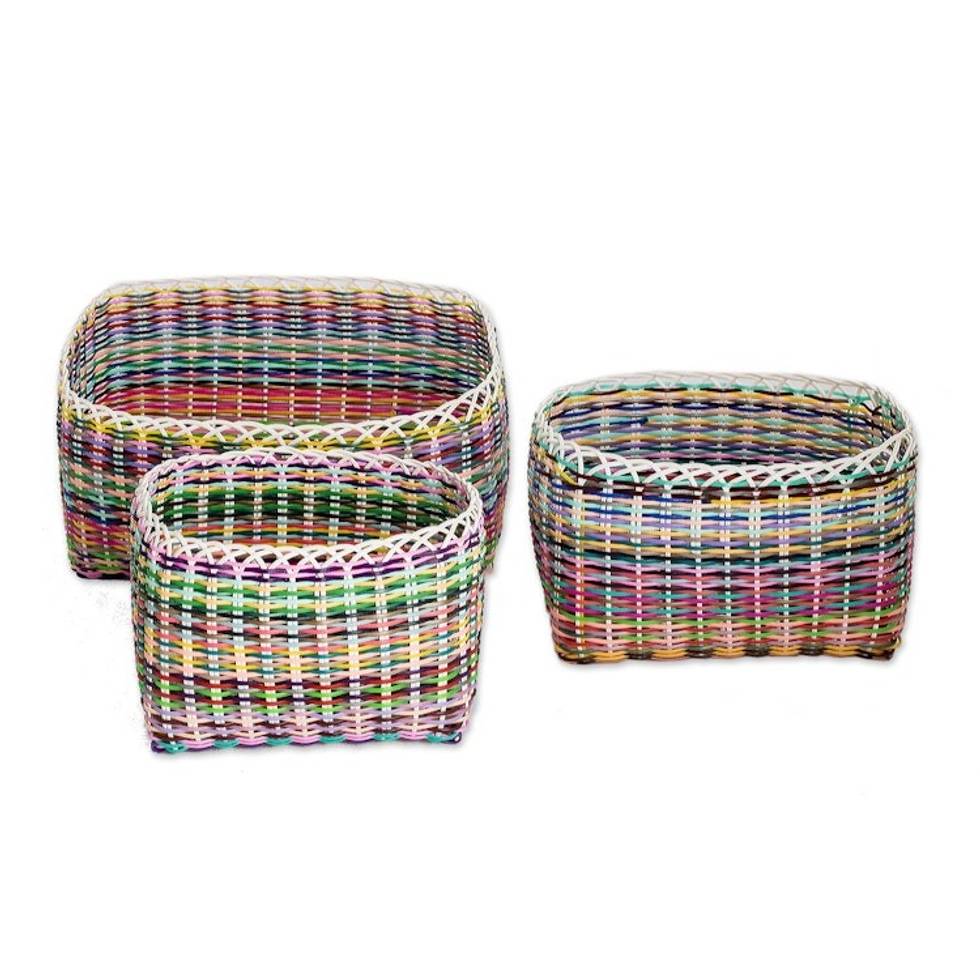 Set of 3 Eco-Friendly Handwoven Colorful Nesting Baskets 'Sustainable Organization' Item ID: 2671769060