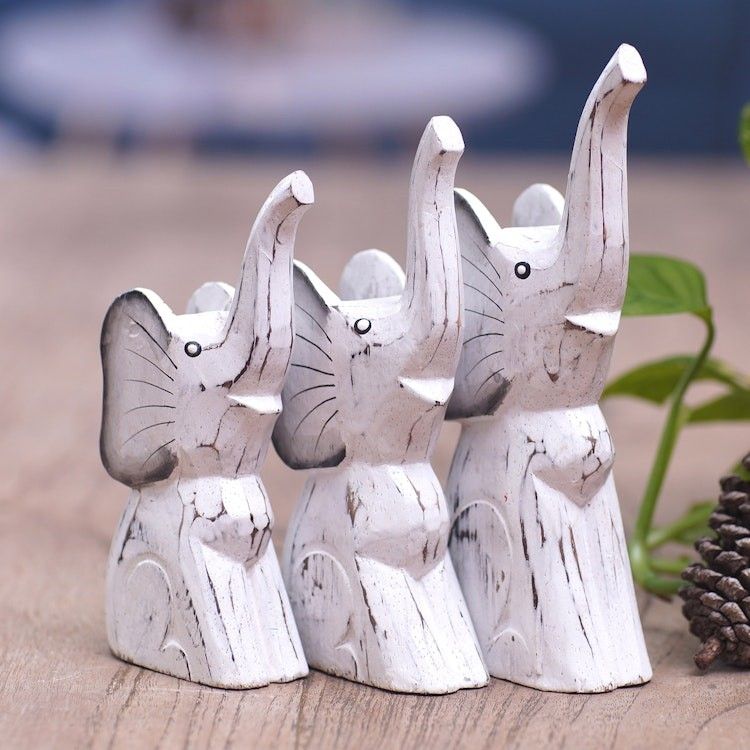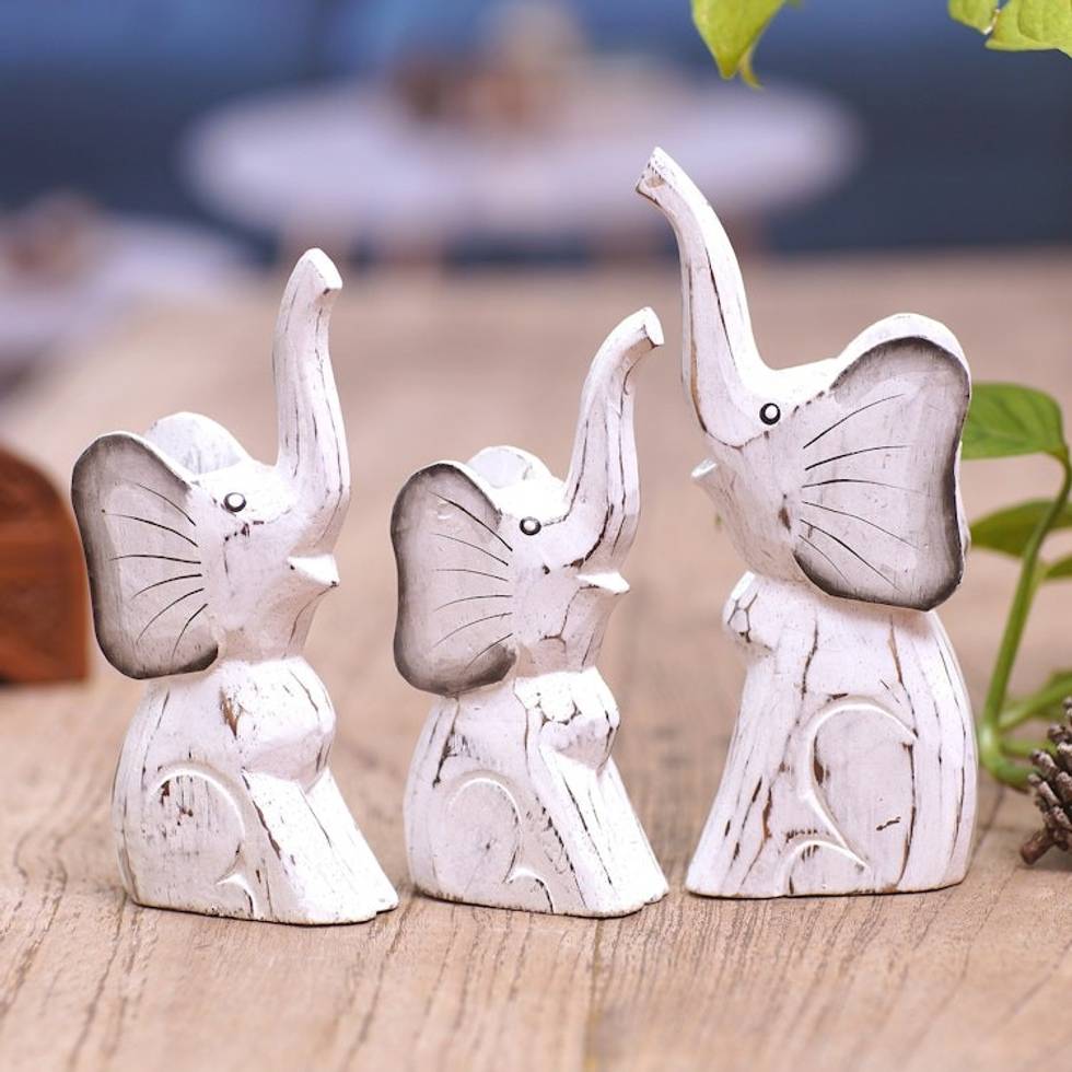 Set of 3 Elephant-Themed Albesia Wood Statuettes from Bali 'Cute Trunks' Item ID: 2671763295