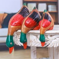 Set of 3 Hand-Carved Painted Raintree Wood Duck Sculptures 'Duck Clan' Item ID: 2671796592