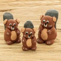 Set of 3 Hand-painted Beaver-themed Ceramic Figurines 'Beaver Family' Item ID: 2671771750