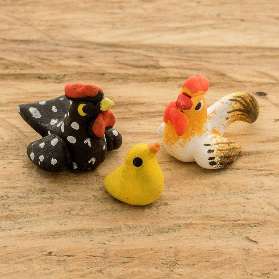 Set of 3 Hand-painted Chicken Themed Ceramic Figurines 'Chicken Family' Item ID: 2671626492