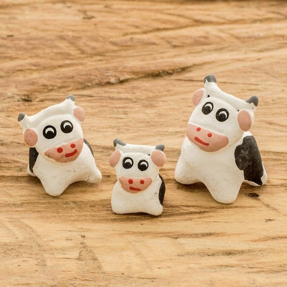 Set of 3 Hand-painted Cow-themed Ceramic Figurines 'Cow Family' Item ID: 2671626017