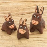 Set of 3 Hand-painted Donkey Shaped Ceramic Figurines 'Brown Donkey Family' Item ID: 2671772546