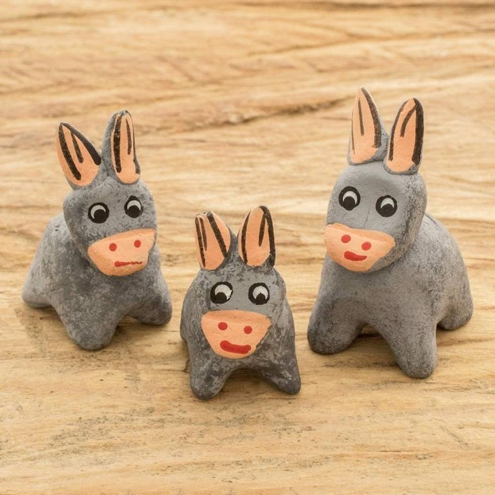 Set of 3 Hand-painted Gray Donkey Shaped Ceramic Figurines 'Gray Donkey Family' Item ID: 2671626638
