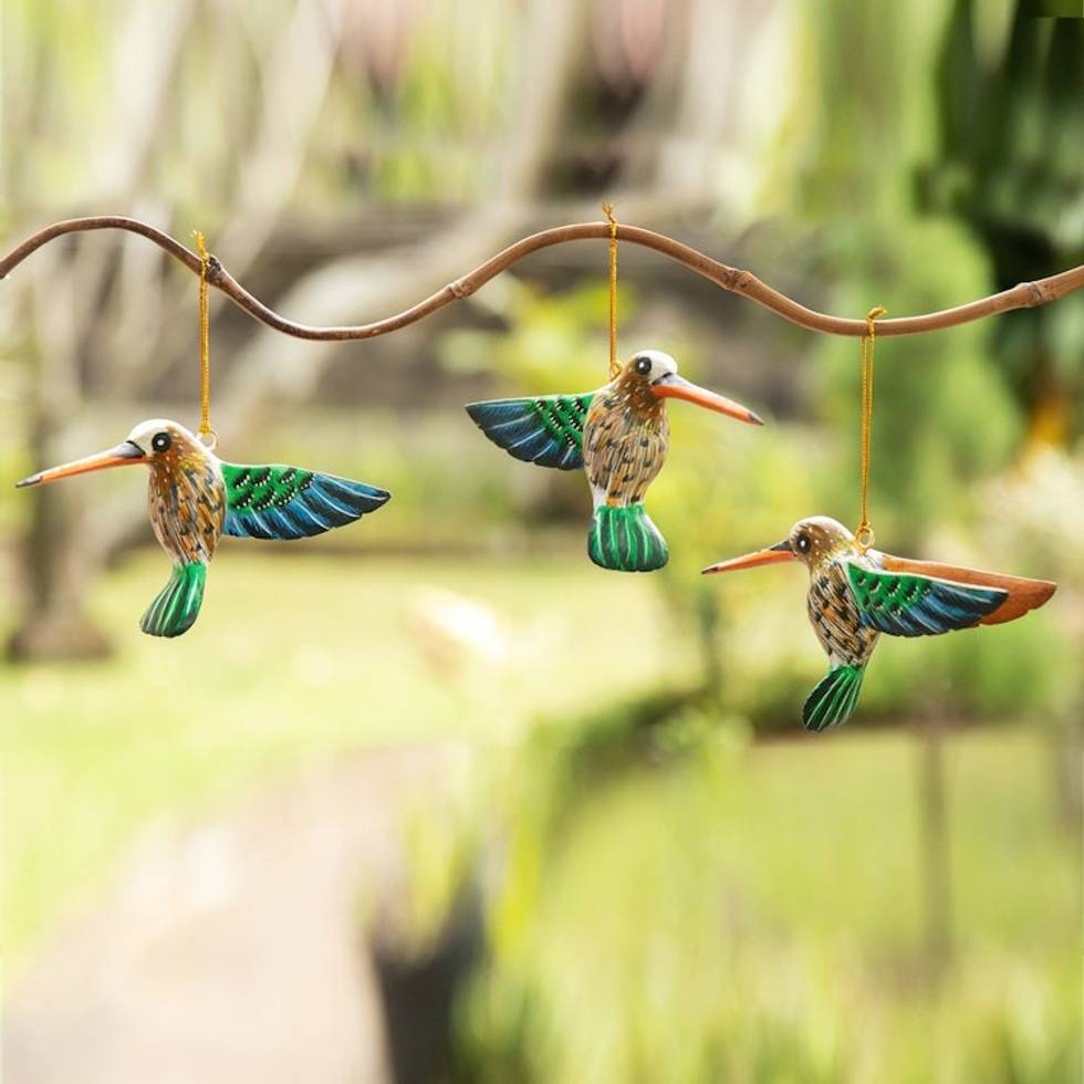 Set of 3 Hand-Painted Hummingbird Ornaments from Bali 'Hummingbird Joy' Item ID: 2671764788
