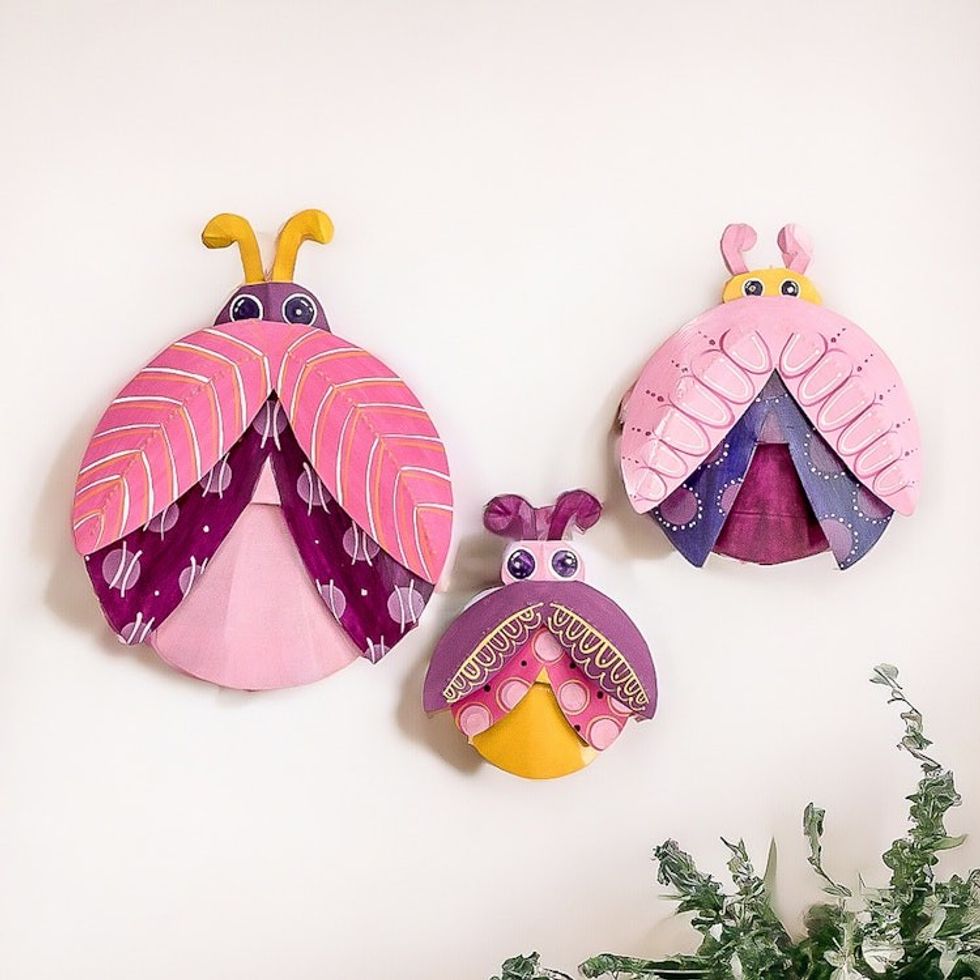 Set of 3 Hand-Painted Pink Ladybug Steel Wall Art 'Dulcet Union' Item ID: 2671768976