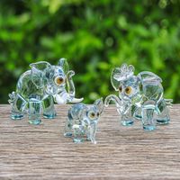 "Honored in Thailand as national symbols, these sweet elephants pose for a traditional family scene crafted by Panapai. The artisan uses the ancient handblown technique to create each member of this giant lineage, beautifying the three glass figurines with a green hue representing hope and optimism."