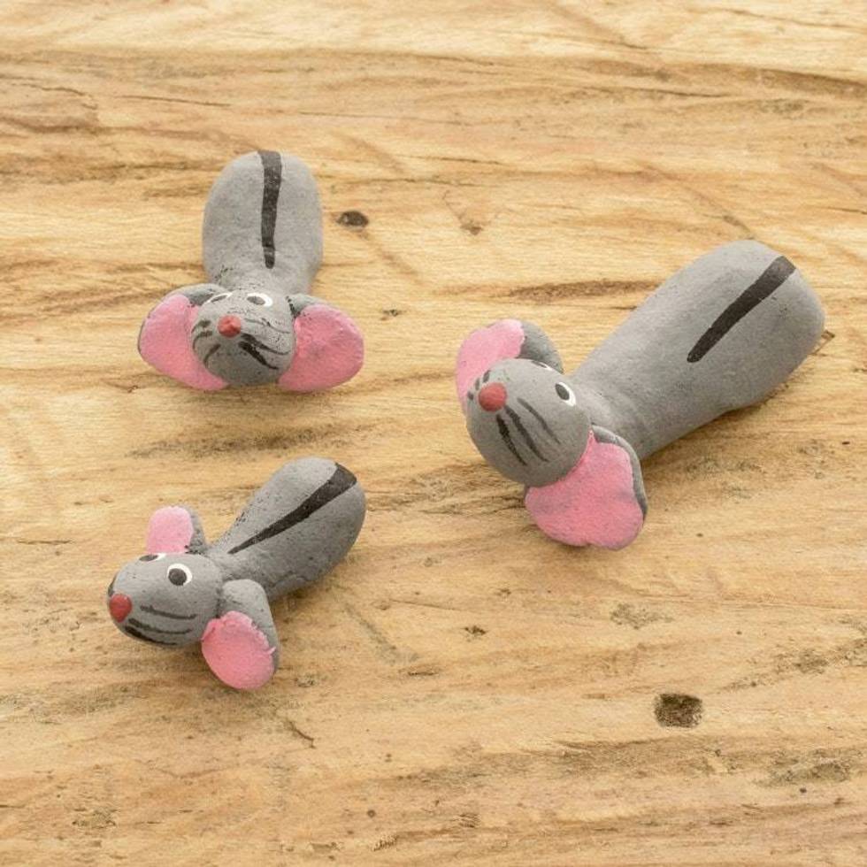 Set of 3 Handcrafted Mouse Ceramic Figurines from Guatemala 'Mouse Family' Item ID: 2676659888