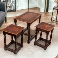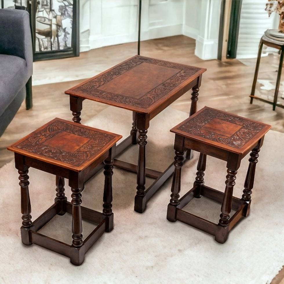 Set of 3 Handmade Classic Tornillo Wood and Leather Tables 'Regal Era' Item ID: 2671698090