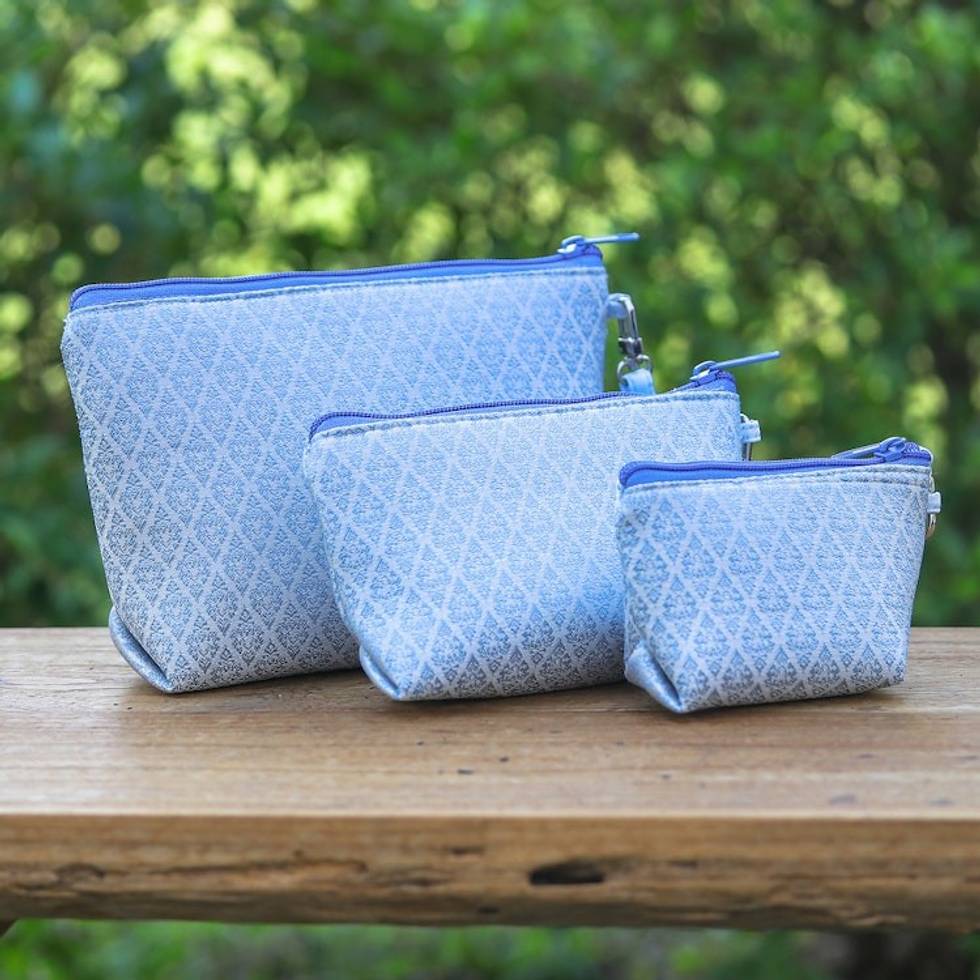 Set of 3 Handmade Thai Cosmetic Bags in Blue and White 'Ethereal Trio' Item ID: 2671798022