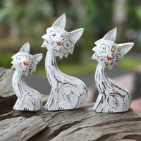 Set of 3 Handmade White and Red Albesia Wood Cat Statuettes 'Feline Noses' Item ID: 2671763105