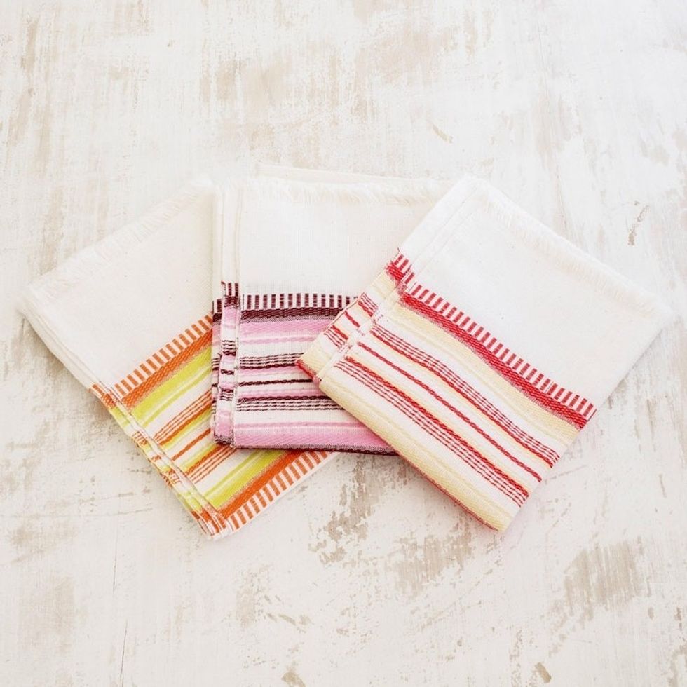 Set of 3 Handwoven Guatemalan Cotton Dish Towels 'Warm Colors' Item ID: 2671776916