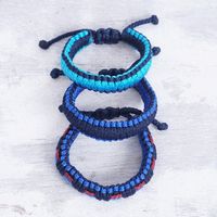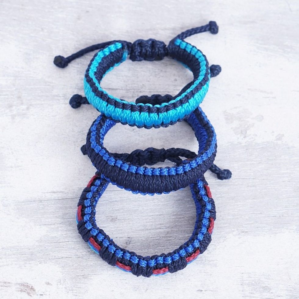 Set of 3 Handwoven Macrame Bracelets in Blue Hues 'Celestial Vibes' Item ID: 2671804234