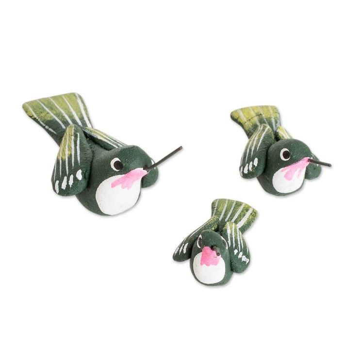Set of 3 Hummingbird Ceramic Figurines from Guatemala 'Hummingbird Family' Item ID: 2671771656