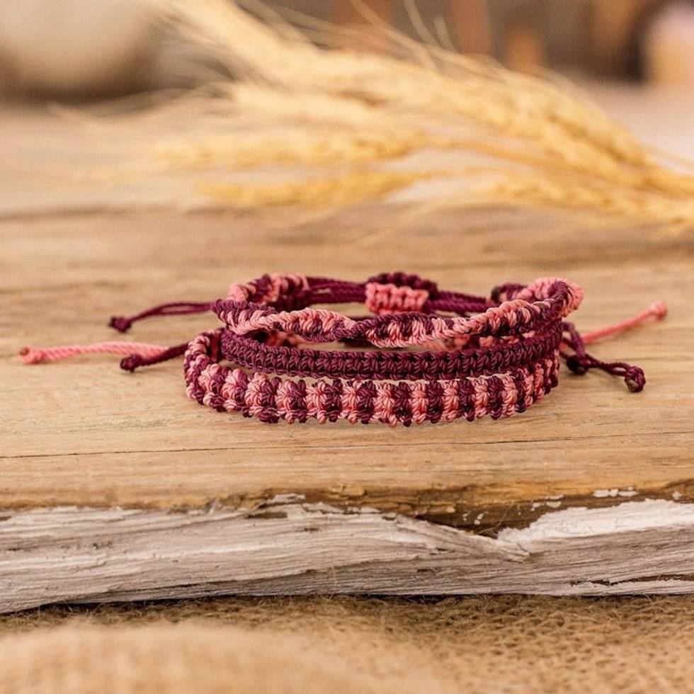 Set of 3 Macrame Friendship Bracelets in Burgundy and Pink 'Burgundy and Rose' Item ID: 2671768960