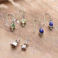 Set of 3 Peridot, Garnet and Lapis Lazuli Earrings 'Charming Three' Item ID: 2671783073
