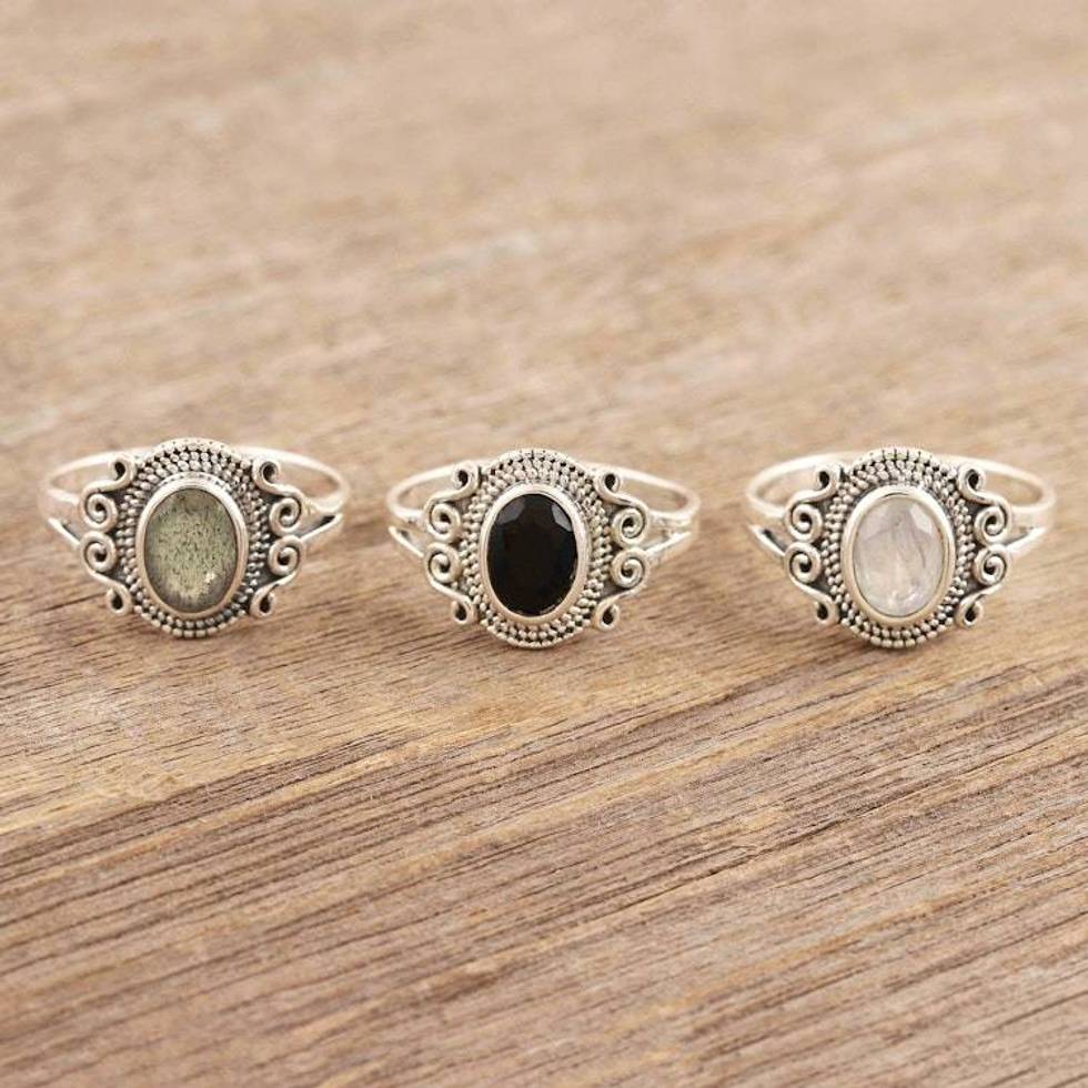 Set of 3 Sterling Silver Gemstone Cocktail Rings from India 'Third Time's the Charm' Item ID: 2676665820