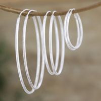 Set of 3 Sterling Silver Hoop Earrings Crafted in India 'Looping Loops' Item ID: 2671625369