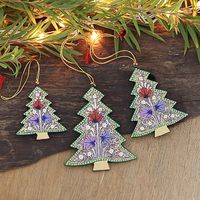 Set of 3 Wood Tree Ornaments in Blue and Green Shades 'Blue Forest' Item ID: 2671786779