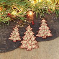 Set of 3 Wood Tree Ornaments in Red and Gold Shades 'Kashmir Nature' Item ID: 2671786725
