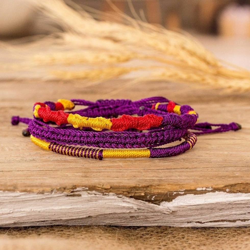 Set of 3 Yellow Purple and Red Macrame Friendship Bracelets 'Vibrant Trio' Item ID: 2671768907