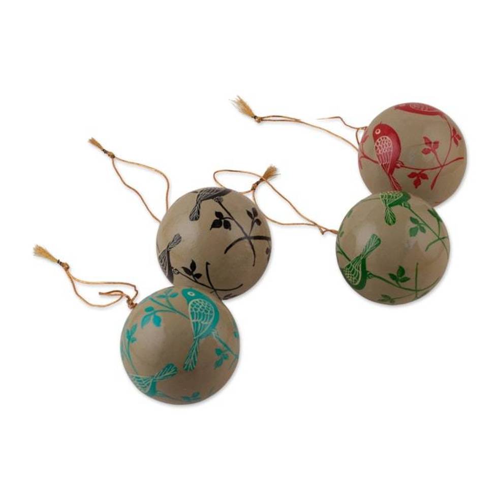 Set of 4 Bird Nature-Themed Papier Mache Christmas Ornaments 'Whimsical Nature' Item ID: 2676665481