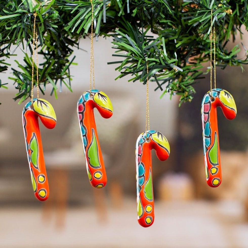 Set of 4 Ceramic Ornaments with Floral Motifs in Vermilion 'Vermilion Canes' Item ID: 2669898043