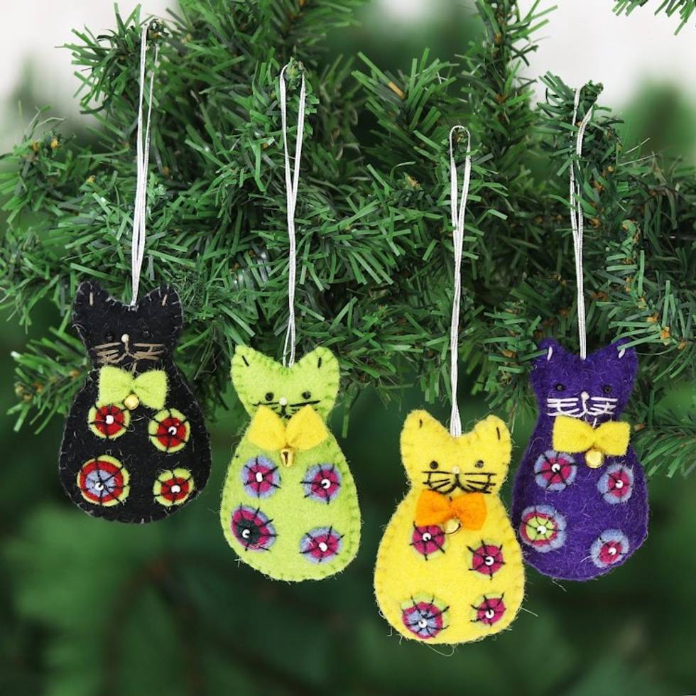 Set of 4 Colorful Cat Wool Felt Holiday Ornaments 'Crafty Cats' Item ID: 2669942996
