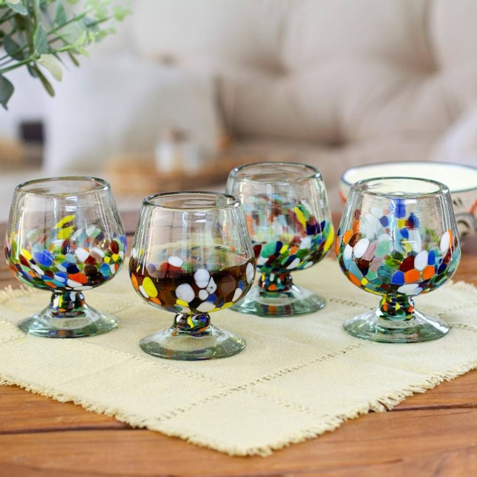 Set of 4 Colorful Handblown Glass Goblets from Mexico 'Chromatic Ceremony' Item ID: 2669898063